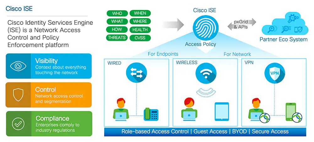 Cisco Identity Services Engine (ISE), kullanıcılar, cihazlar ve uygulamalar için ağ erişimini yönetmek ve korumak amacıyla kullanılan ağ erişim denetleyicisidir. Cisco ISE ile kimlerin ağ da olduğunu, hangi cihazları kullandıklarını, hangi bilgilere eriştiklerini ve nerede olduklarını görebilmenizi sağlar. Cisco ISE Faydaları: Ağ erişimi denetimi için merkezi bir konumda bulunarak yönetim kolaylığı sağlar. Cisco DNA Center […]